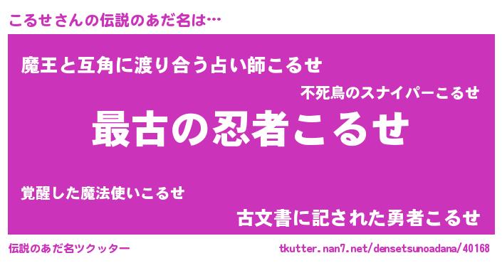 | 意味不明あだ名 | 『こるせフォーエバー』『永久保存こるせ』 |