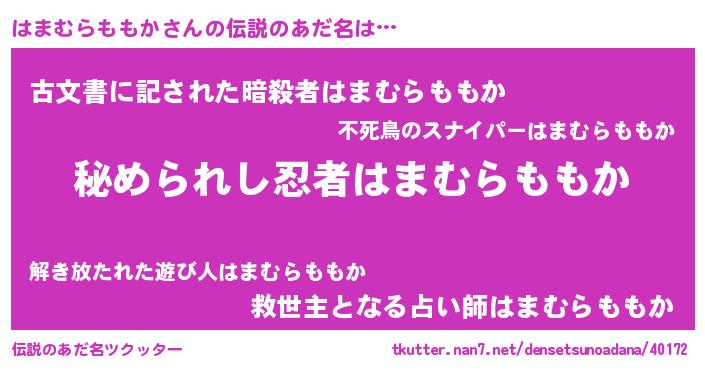 | 意味不明あだ名 | 『はまむらももかフォーエバー』 |