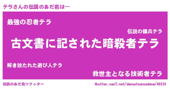 | 意味不明あだ名 | 『永久保存テラ』『テラフォーエバー』 |