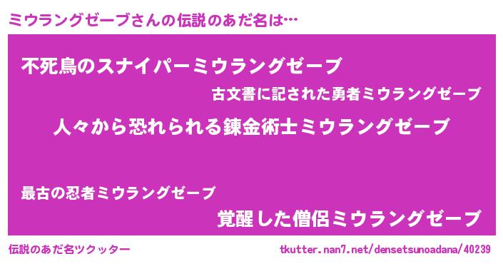 | ヒーロー風カッコイイあだ名 | 『仮面ミウダー』『炎刃騎士ミウ』 |