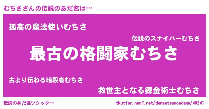 | ファンタジー風あだ名 | 『エターナルムチサー』『ゼムチトゥ』 |