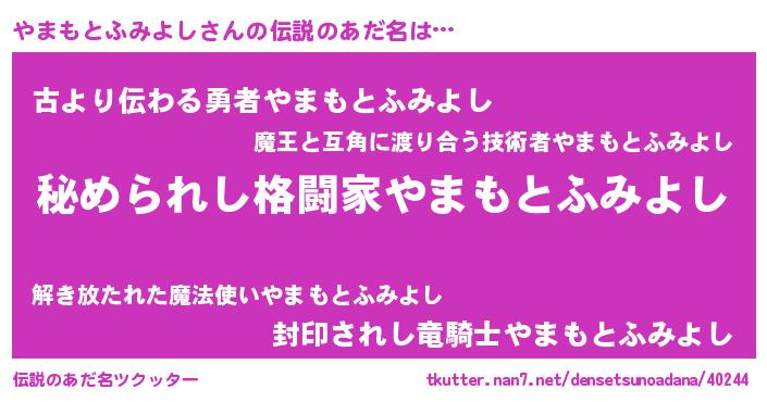 | ファンタジー風あだ名 | 『エターナルヤマモトフミヨシー』 |