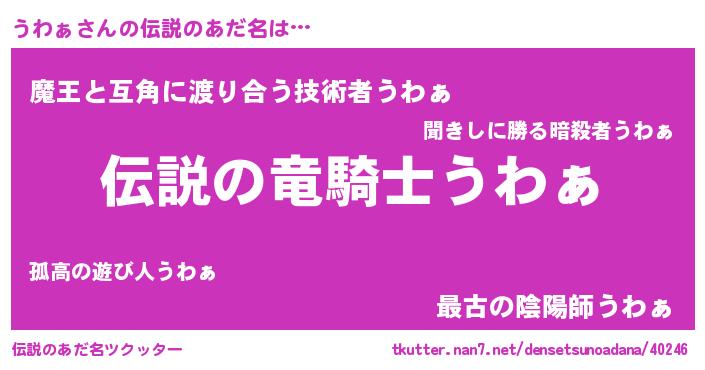 | ファンタジー風あだ名 | 『ウワフェル』『クインウット』 |