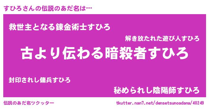 | ヒーロー風カッコイイあだ名 | 『ネオスヒロ』『愛の使者すひろ』 |