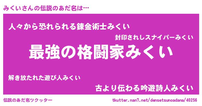 | ファンタジー風あだ名 | 『エターナルミクイー』『ゼミクトゥ』 |