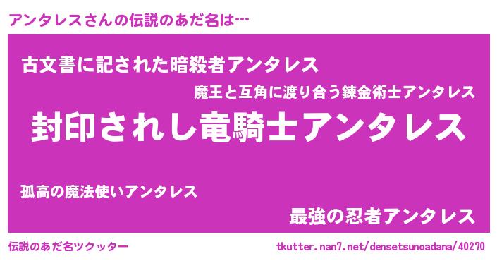| ヘコむあだ名 | 『アンにー』『アンタレス(震え声)』 |