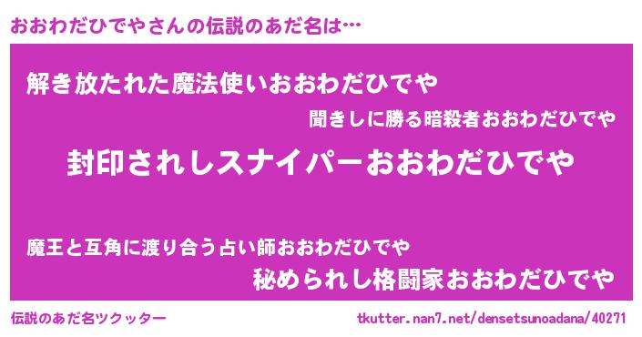 | 意味不明あだ名 | 『住所不定無職おおわだひでや(95歳)』 |