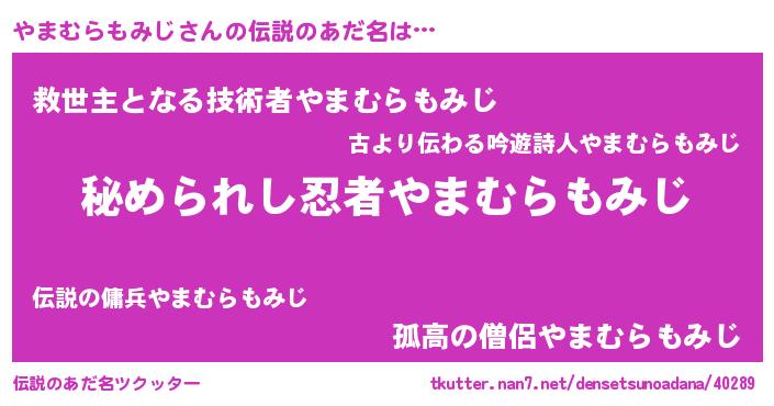 | 意味不明あだ名 | 『やまむらもみじフォーエバー』 |