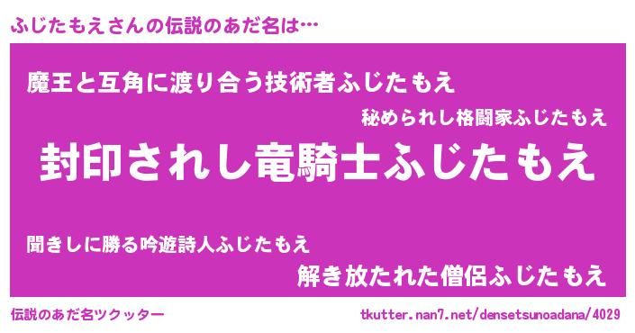 | 男性向けラノベタイトル風あだ名 | 『この素晴らしい世界にふじたもえを!』 |