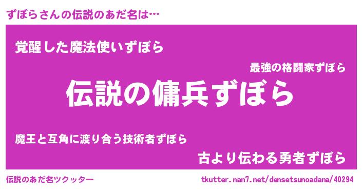 | ヒーロー風カッコイイあだ名 | 『スーパーズボラ』『天弓騎士ズボ』 |