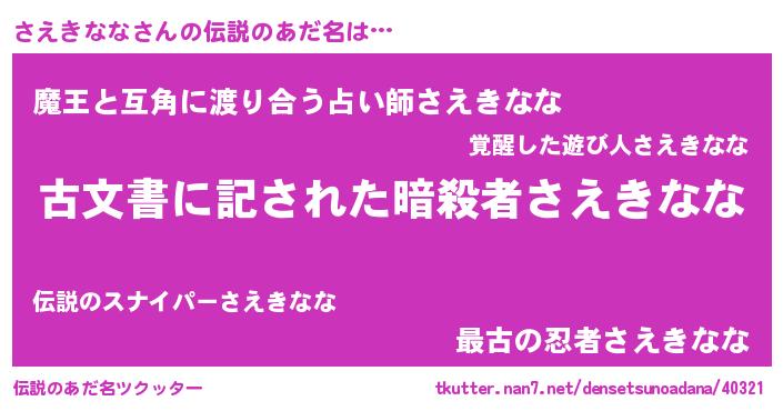 | 胡散臭い通販商品みたいなあだ名 | 『前代未聞の健康食品…その名も「さえきなな」』 |
