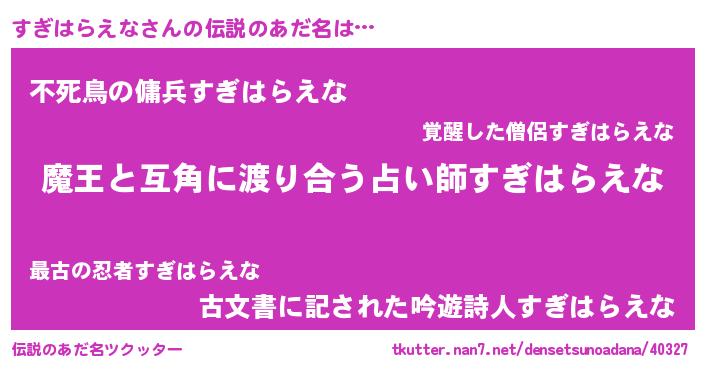 | 料理風あだ名 | 『すぎはらえなごはん』 |