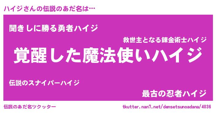 | ヒーロー風カッコイイあだ名 | 『究極戦士ハイジ』『暗黒騎士ハイ』 |