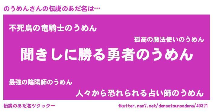 | 男性向けラノベタイトル風あだ名 | 『のうめんという概念が存在しない退屈な世界 』 |