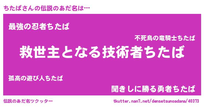 | ヒーロー風カッコイイあだ名 | 『仮面チタダー』『最強戦士チタバ』 |