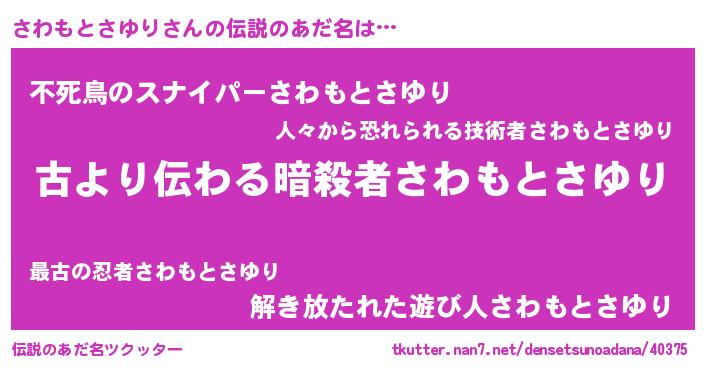 | ヘコむあだ名 | 『さわもとさゆり(笑)』『さわっふぃ~』 |