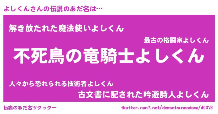 | ヒーロー風カッコイイあだ名 | 『スーパーヨシクン』『銀牙騎士ヨシ』 |