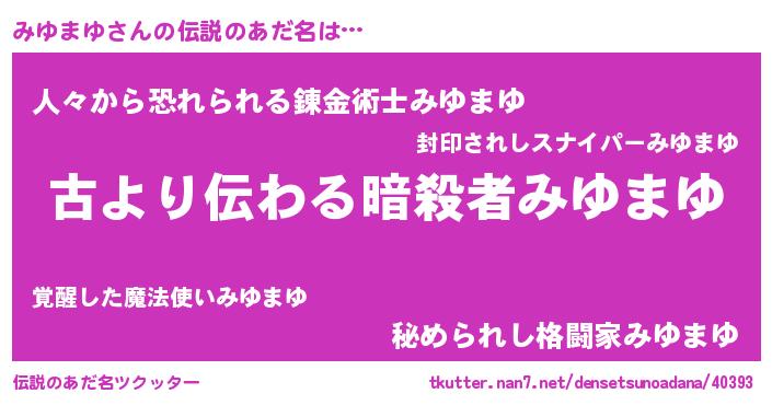 | 意味不明あだ名 | 『永久保存みゆまゆ』『自称みゆまゆ』 |