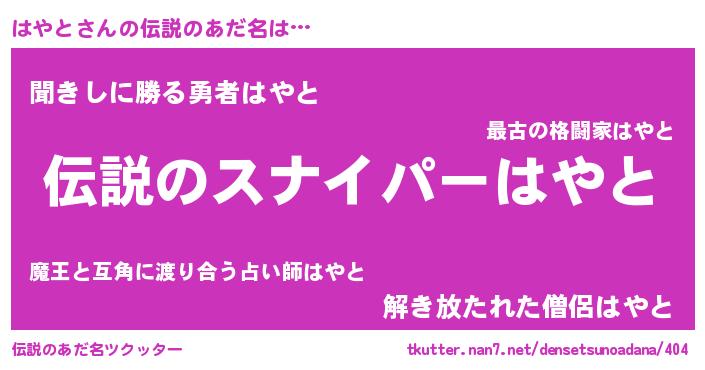 | ファンタジー風あだ名 | 『ハヤフェル』『ヴァルハヤーナ』 |
