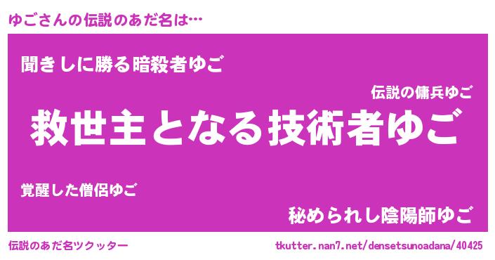 | ヒーロー風カッコイイあだ名 | 『究極戦士ユゴ』『友情の使者ゆご』 |