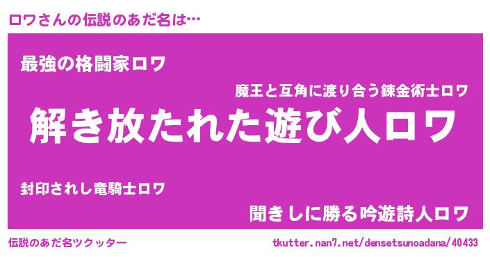 | ヒーロー風カッコイイあだ名 | 『魔戒騎士ロワ』『仮面ロワダー』 |