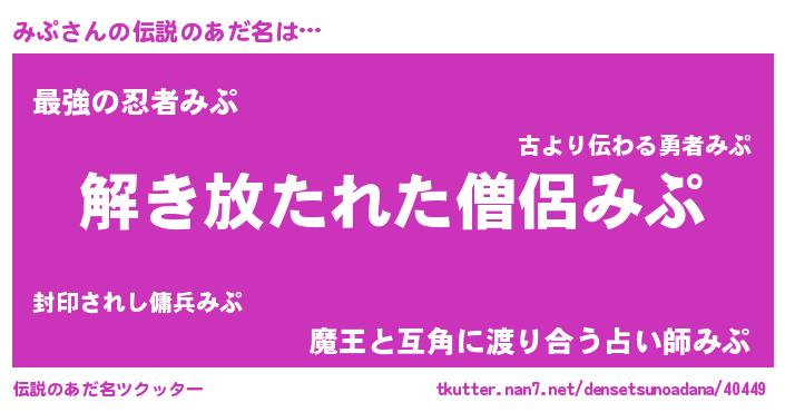 | 意味不明あだ名 | 『自称みぷ』『とにかく怪しいみぷ』 |
