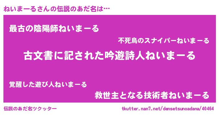 | 意味不明あだ名 | 『永久保存ねいまーる』 |