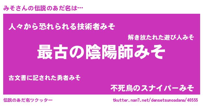 | ポケモン風あだ名 | 『ミソダネ』『ミソセウス』 |