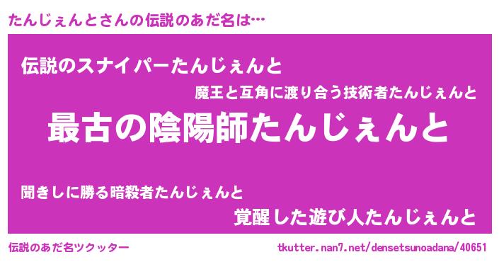 | 男性向けラノベタイトル風あだ名 | 『転生したらたんじぇんとだった件』 |
