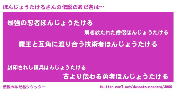 | ヒーロー風カッコイイあだ名 | 『慈愛の使者ほんじょうたける』 |