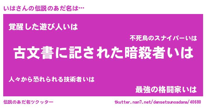 | 胡散臭い通販商品みたいなあだ名 | 『前代未聞の健康食品…その名も「いは」』 |