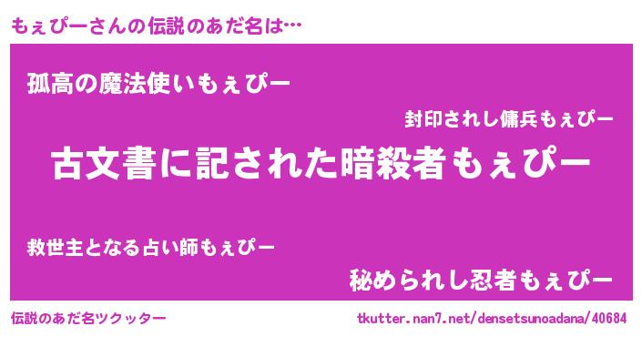 | ヘコむあだ名 | 『もぇぴー(爆)』『もぇを』 |
