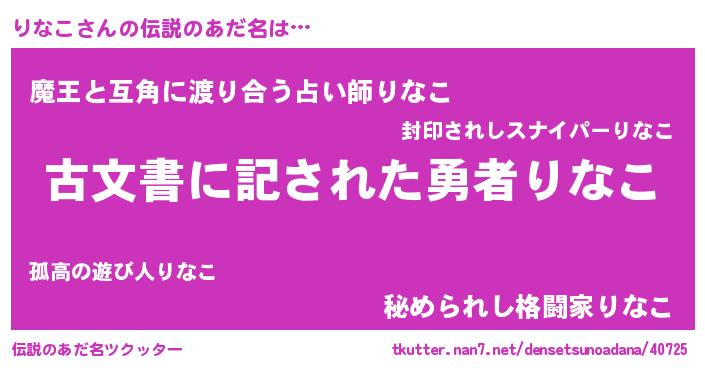 | 意味不明あだ名 | 『自称りなこ』『なめこ科りなこ属』 |
