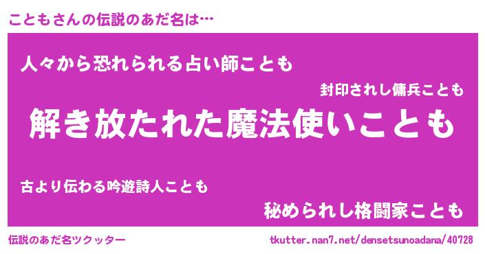 | ヒーロー風カッコイイあだ名 | 『サイバー戦士コトモ』『暗黒騎士コト』 |