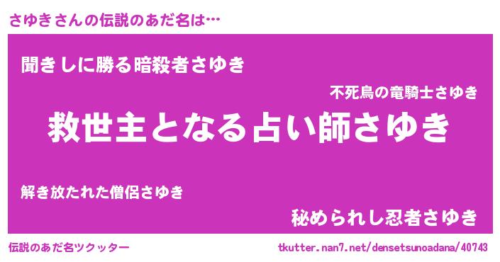| ヒーロー風カッコイイあだ名 | 『天空の使者さゆき』『ネオサユキ』 |