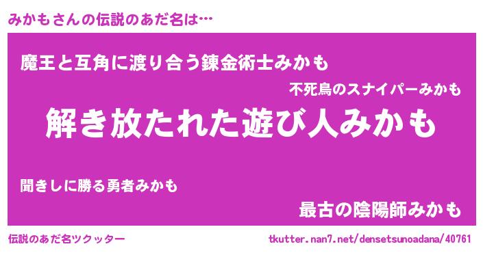 | 意味不明あだ名 | 『とにかく怪しいみかも』『自称みかも』 |