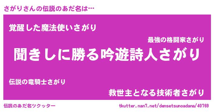 | 意味不明あだ名 | 『永久保存さがり』『自称さがり』 |