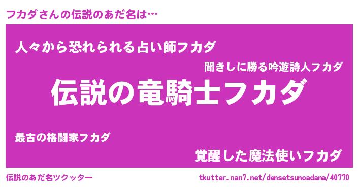 | 意味不明あだ名 | 『住所不定無職フカダ(3歳)』『自称フカダ』 |