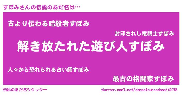 | ヒーロー風カッコイイあだ名 | 『銀牙騎士スボ』『最強戦士スボミ』 |