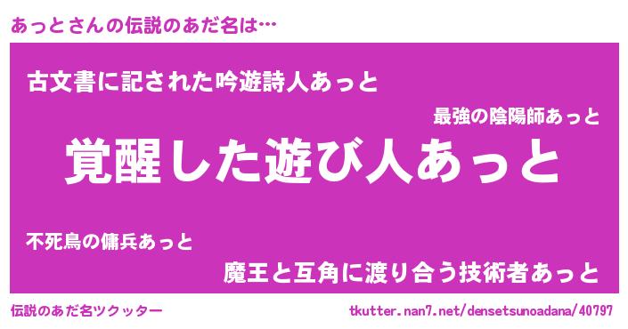 | 意味不明あだ名 | 『自称あっと』『とにかく怪しいあっと』 |