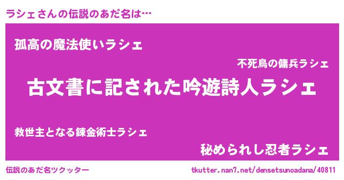 | 意味不明あだ名 | 『永久保存ラシェ』『ラシェフォーエバー』 |