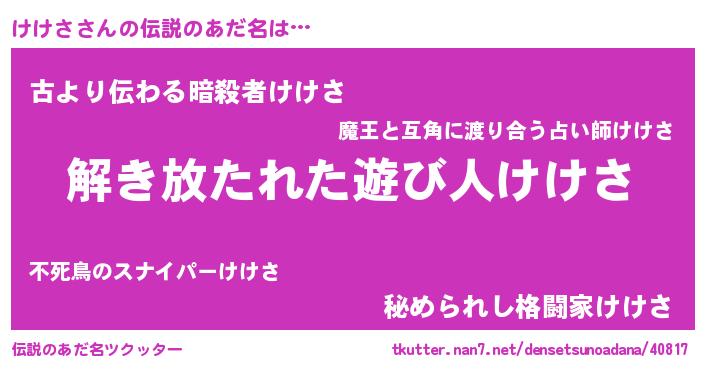 | 意味不明あだ名 | 『自称けけさ』『とにかく怪しいけけさ』 |