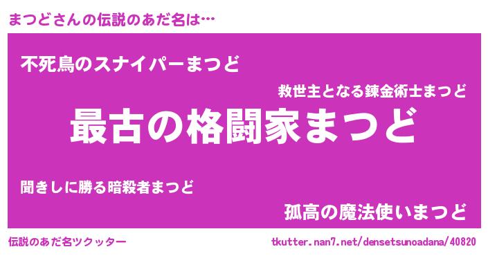 | ヒーロー風カッコイイあだ名 | 『ウルトラまつどマン』『スーパーマツド』 |