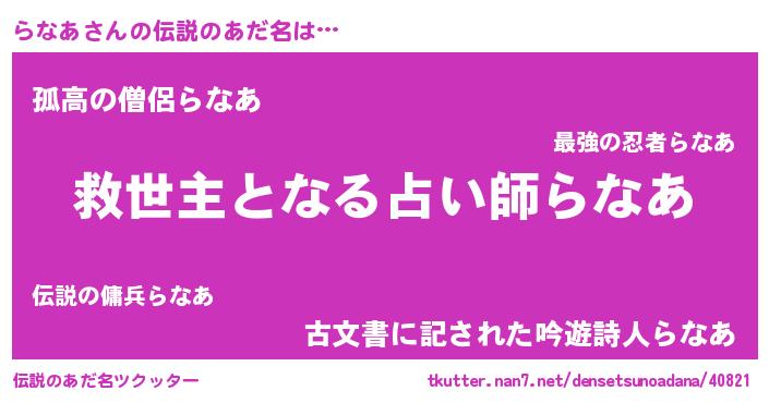 | 意味不明あだ名 | 『自称らなあ』『住所不定無職らなあ(47歳)』 |