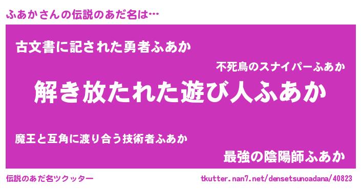 | ヘコむあだ名 | 『ふあぷりん』『ふあか(震え声)』 |