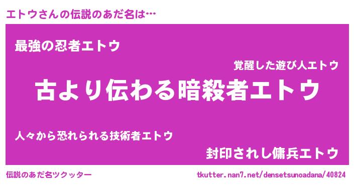 | 胡散臭い通販商品みたいなあだ名 | 『来世でも幸せになれる健康食品…その名も「エトウ」』 |