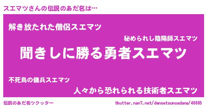 | 意味不明あだ名 | 『永久保存スエマツ』 |