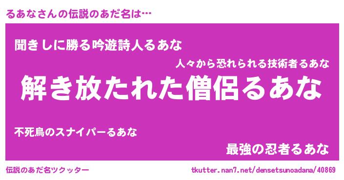 | 男性向けラノベタイトル風あだ名 | 『この素晴らしい世界にるあなを!』 |