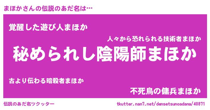 | ヒーロー風カッコイイあだ名 | 『ウルトラまほかマン』『暗黒騎士マホ』 |