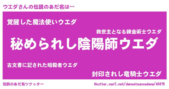 | ヒーロー風カッコイイあだ名 | 『仮面ウエダー』『ウルトラウエダマン』 |